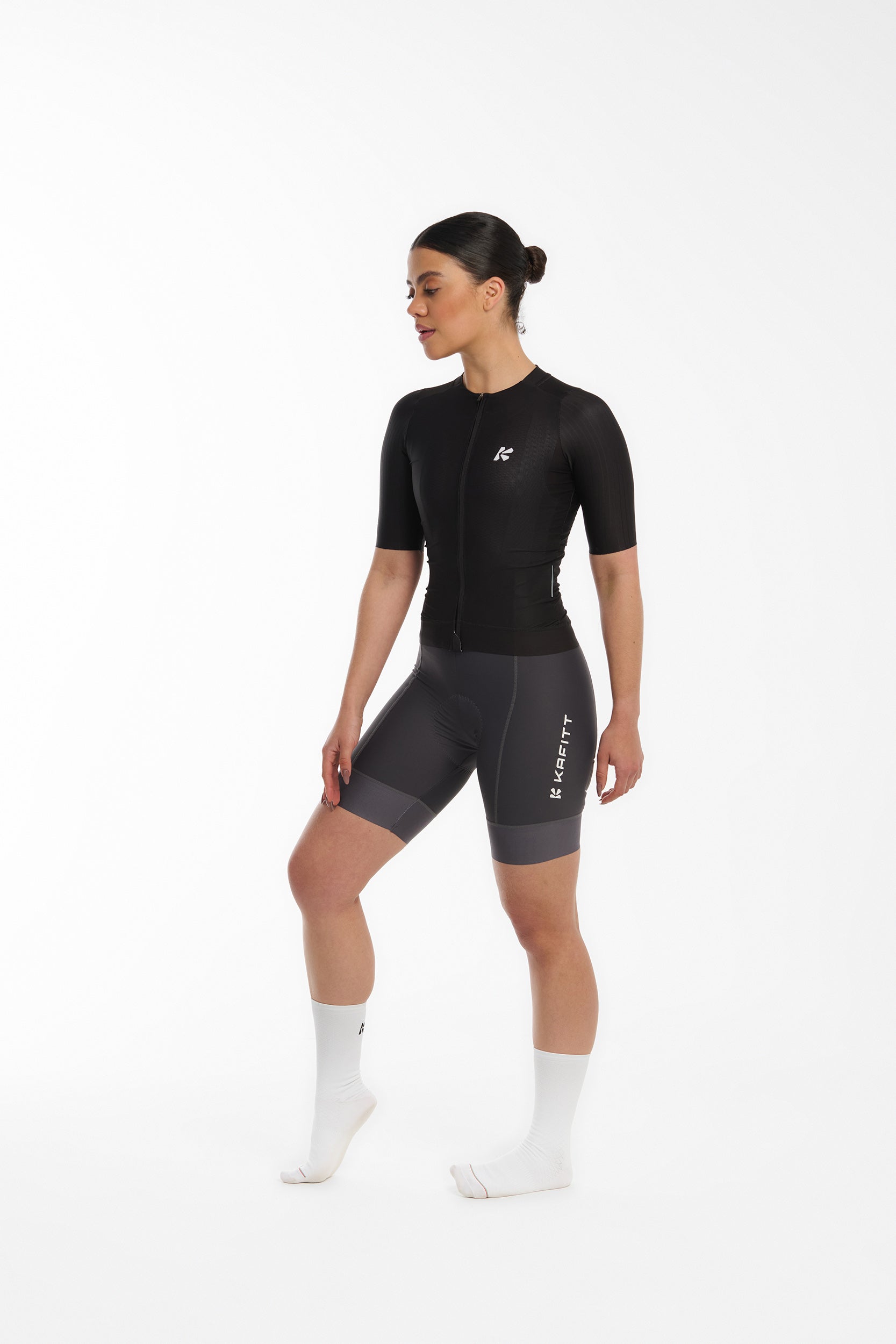 Fabricado con tecnología FlowTech, un tejido de ingeniería avanzada que optimiza la transpirabilidad sin comprometer la compresión ni la aerodinámica.